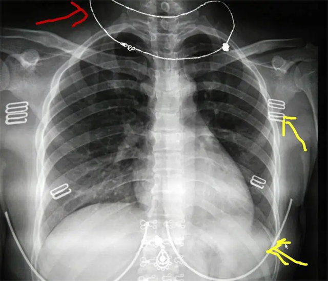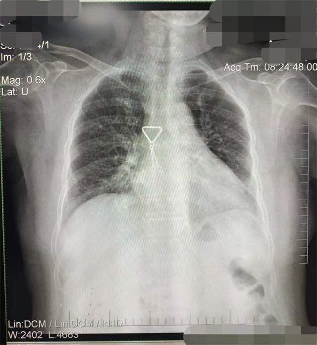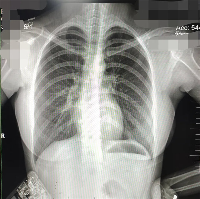 解决:去除手机后,使患者左侧紧贴成像件曝光。