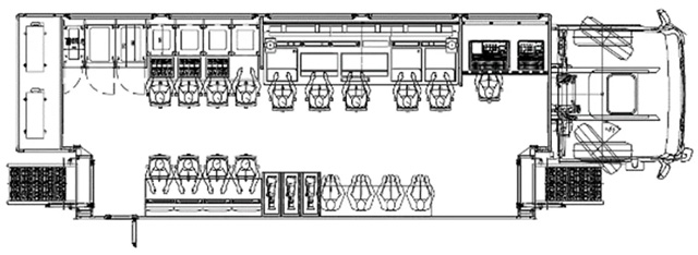 另外,这种转播车一般要求自身可携带线缆盘和摄像机等附件,不会额外配备工具车。   还有,在底盘选择上,如果选择不带卧铺的底盘车,厢体可用长度还能更长一些。