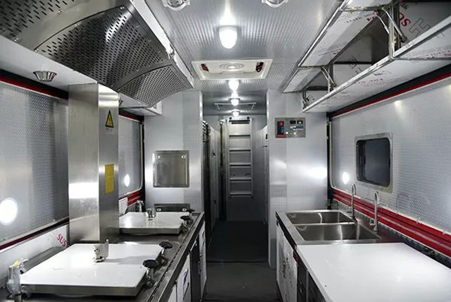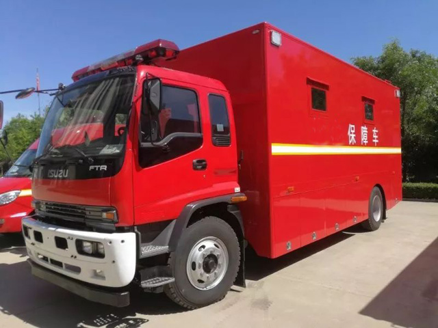后勤保障车隔热保温、防雨防火、防热辐射、防蚊虫。全天候满足军队、公安、消防、卫生等部门的抢险应急救援等多用途使用执行特殊任务的后勤保障需求。后勤保障车是根据消防系统特点和野外执行任务的需求,多种功能车型,可以满足8-24人宿营,淋浴、上厕所。主副食用餐多功能车型。炊事车上面有各种安全节能的煤气炉、各种烹饪器材。设计安全性高,即使在高速行驶恶劣环境下面都可以大大的提后勤保障车高车辆的稳定性安全性。可以让驾驶员更好的控制车辆。出行更安全高效。还有就是后勤保障车的设计中都适用两侧翼的使用方式。扩大使用空间。使用面积也大大的增加。还需要机动性好,作业能力高等方便操作。乘坐舒适。