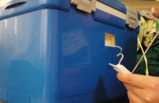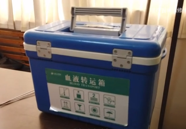 医院输血、送血,用血液中转箱来周转,它是一个带保温功能的箱子。箱子里面内胆可能有一些泡沫之类的保温材料。箱子的前面有一块液晶显示屏,用来显示箱子温度数据。不显示的话就是电池没了需要更换电池。箱子的扣子打开后,正常的话是放冰袋之类的东西,它的目的是可以让里面的血液保持在一个恒定的温度。因为我们正常的血液的温度需要存放在八摄氏度左右。拿走上面的格子槽,可以看到箱体里面的大空间来存放血液制品。根据血液、血浆、血小板不同材料要求来进行温度调节。温度不会受外界影响变化。