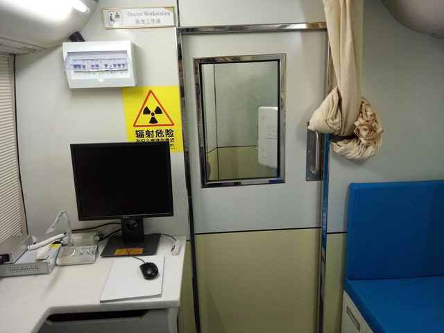 DR体检车设备的布局防护查看周围的剂量当量率水平。车厢设备房固定屏蔽,四周的防御性不能低于1毫米的铅当量。检查时候车厢机房的顶部底部需要防护避免辐射散射。