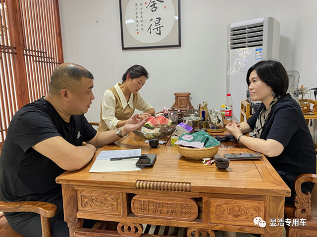 湖北太阳成集团tyc122cc董事长陆明菊女士向王副市长介绍了我司主营的抗疫产品(移动核酸检测车、核酸采样亭)和医疗车(体检车、CT车、两癌筛查车等)的生产和销售情况。陆董表示面对日益增长的市场需求,我司会抓住机遇将公司做大做强。