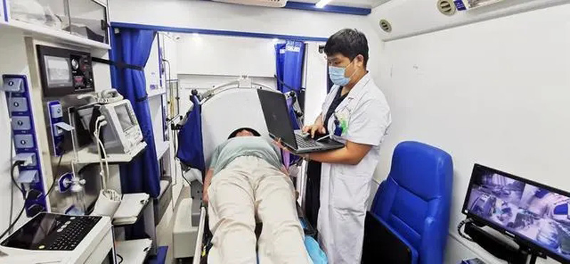 5G脑卒中CT救护车跟转运救护车双向奔赴,跟病人对接后,马上进行颅脑的CT扫描,血液检测和溶溶栓治疗,传统模式是救护车需要直接开到医院才能开始这些抢救项目,现在脑卒中CT救护车可以提前出发,在高速收费站会合启动关键的救治环节。这个验证了移动卒中单元缩短溶栓时间的核心效能。病人转入了脑卒中救护车后。马上进行心电图、血糖、血常规等检测。脑部的CT检查也开始,头部CT是卒中影像学检查的第一步它能快速区分是缺血性卒中,还是出血性卒中,将检查结果传输到医院的卒中中心,通过专家的远程指导。影像诊断明确到静脉溶栓药物推注,全程均在救护车上完成。