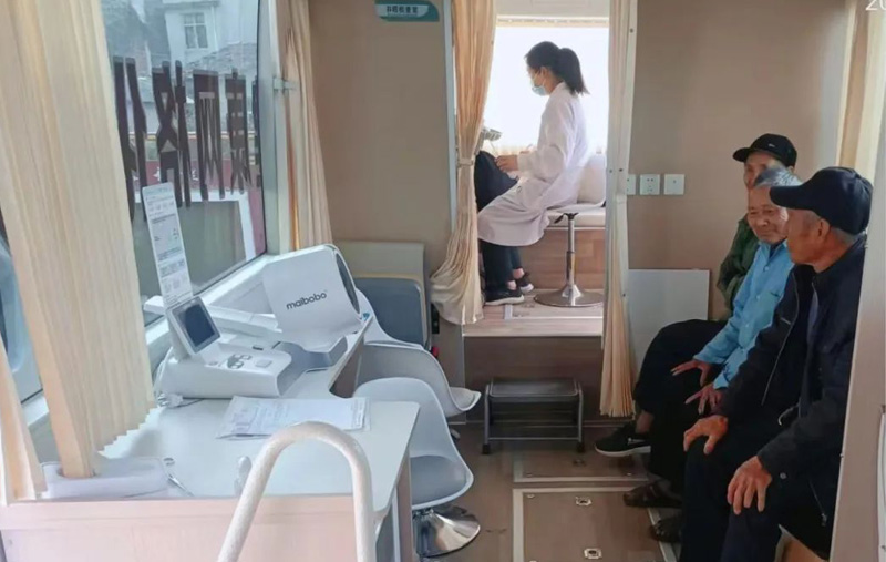 提供更加优质、高效、便捷的健康服务,体检车开到家门口,体检检查、医疗义诊、进行健康指导。极大地节省了受检人员的时间和成本,也使体检变得更加人性化。得到广大人民群众的一致好评。车内安装了配电系统、壁挂式空调、液压支撑装置、检查床、工作台等等体检科、功能科、放射科、针灸推拿康复科等多个科室医护人员,测血压设备、车载DR、心电图、血常规尿常规、生化检测等体检服务。进行抽血、检测血压、体格检查、听力、胸部DR、B超等检查,实现远程医疗诊断,一般体格检查等基础项目都有,减少等待,提高服务效率。