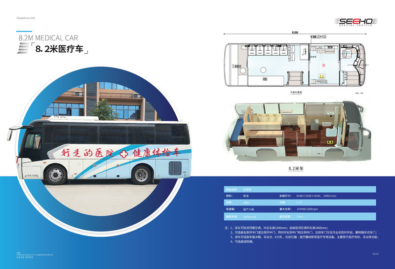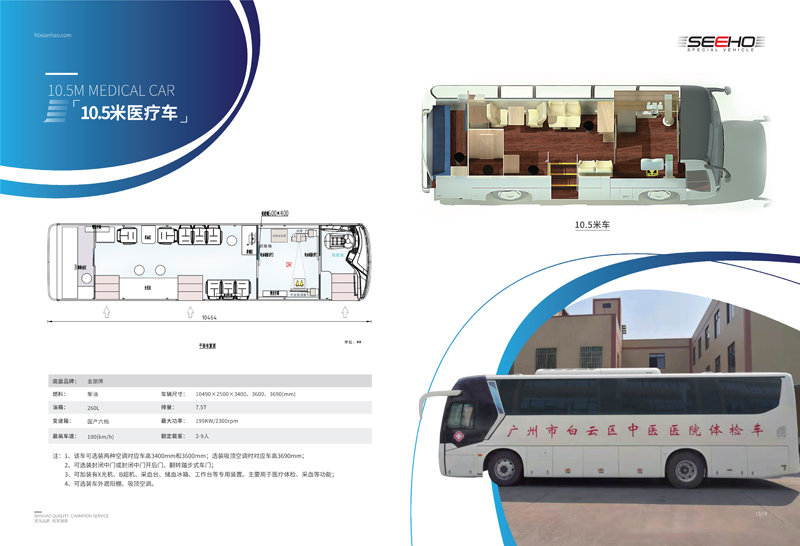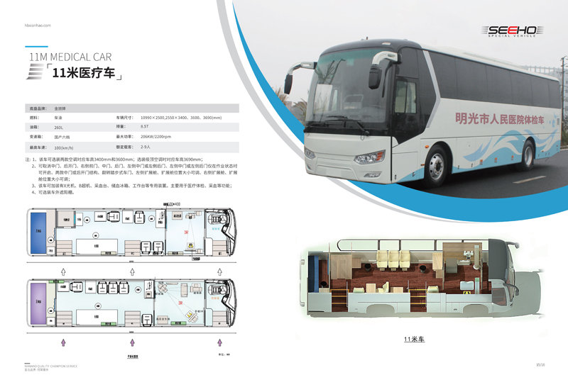 太阳成集团tyc122cc专用车生产的体检车均选用一线品牌车(宇通、金龙、金旅)实用、先进、布局合理、操作方便、驾乘舒适。 体检车长有6米、7米、8.2米、9米、10.5米、11米、12米可选。