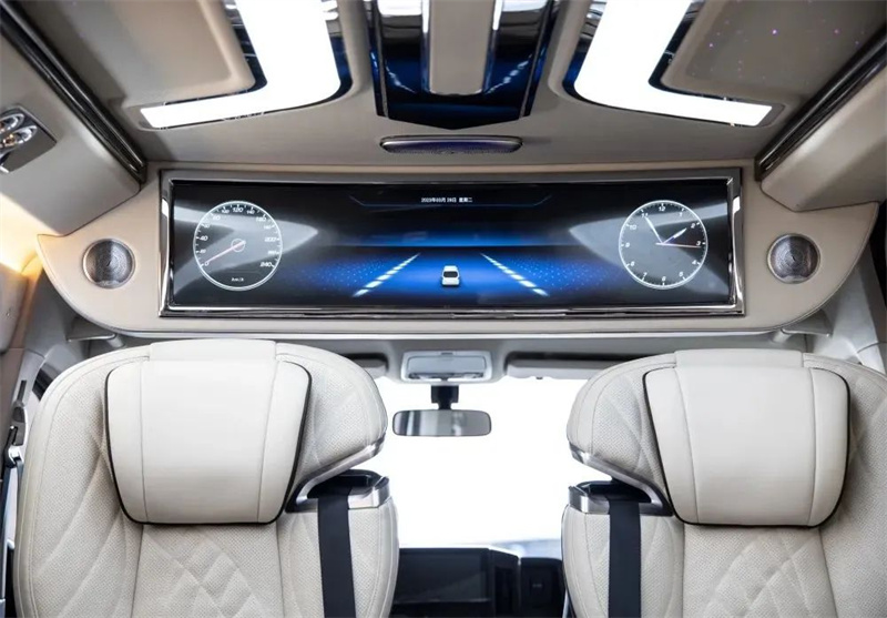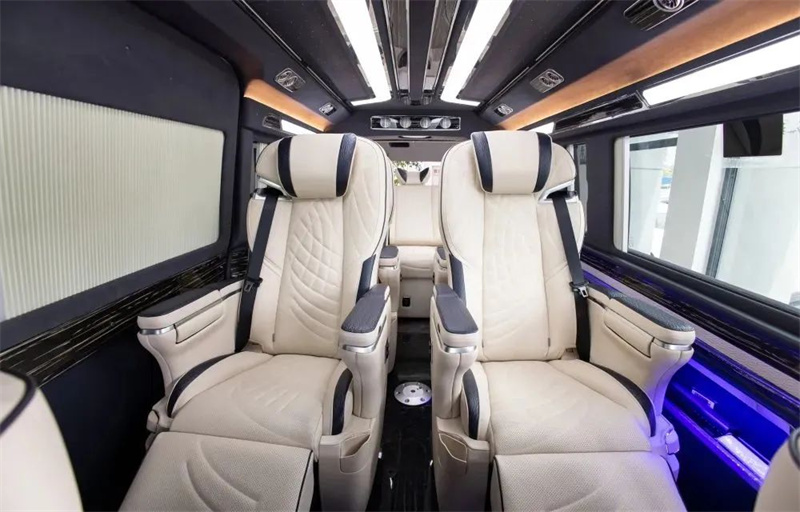 改装商务车两个航空座椅用的是埃尔法同款是舒适座椅,深度包覆,包裹性极好,座椅扶手物理按键可以调节座椅的所有功能,包括通风,按摩,加热,腿托以及全方位的移动和旋转,能过满足不同乘坐者的不同用车需求。